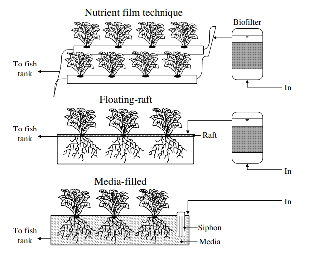 A comparative illustration of the main aquaponic techniques is presented in Figure 1 (Wongkiew, 2017).