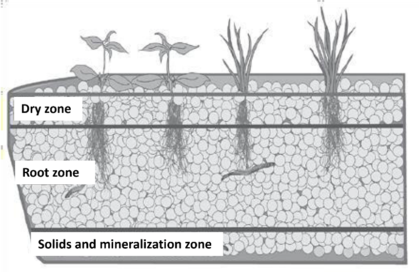 Figure 4. Zones within a media-based growing bed (Bernstein, 2011)