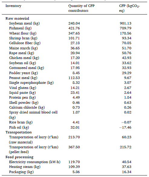 Table 1. Carbon footprint of feed production required for one ton of shrimp production (Rong et al., 2025).