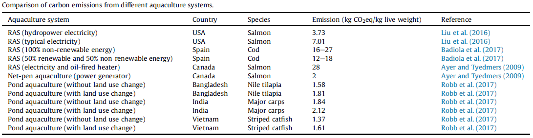 Table 3. Carbon emission comparison for aquaculture systems (Ahmed & Turchini, 2021).