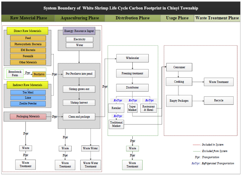 Figure 2. System boundary of the carbon footprint of white shrimp (Chang et al., 2017).