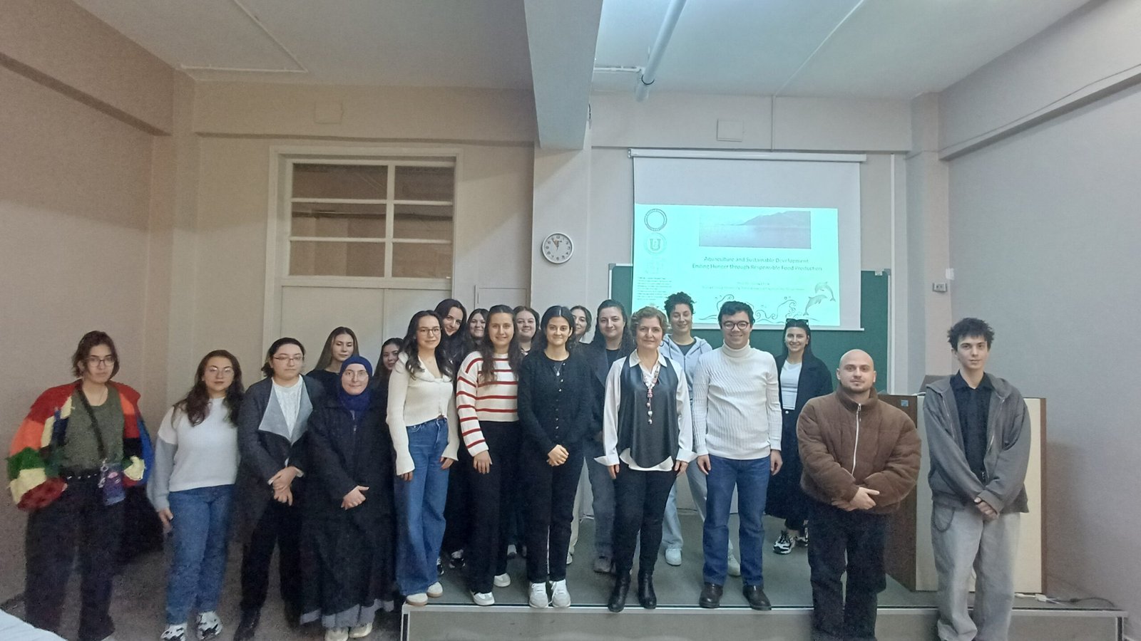 As part of the TÜBİTAK 124N067 project titled “Sustainable Management of Aquaculture Production Systems,” a seminar and workshop entitled “Aquaculture and Sustainable Development: Ending Hunger through Responsible Food Production” was delivered by Prof. Dr. Güray Çelik on March 04, 2026.