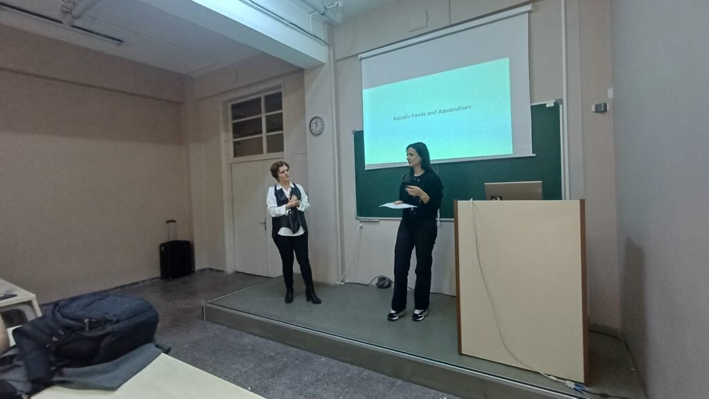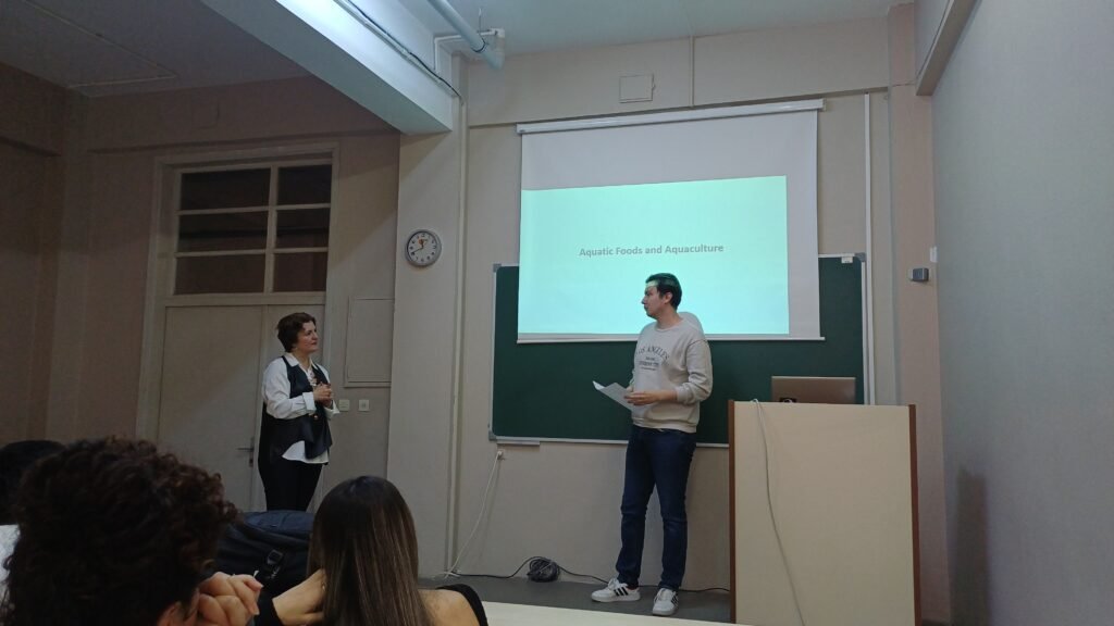 During the seminar, Prof. Dr. Güray Çelik from the Department of Environmental Engineering at Bursa Uludağ University presented the current state of global food systems, the impact of the growing world population on food demand, and the role of aquaculture in sustainable food production. Within the framework of the United Nations Sustainable Development Goals, particularly SDG 2: Zero Hunger, the contribution of aquatic food production to global food security was discussed. In addition, the nutritional value of blue foods, their environmental performance, and their potential contributions to sustainable food systems were emphasized.