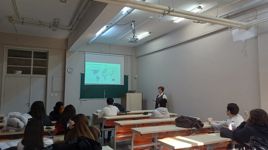 The presentation also provided information on the Global Food Security Index, explaining that food security is evaluated through the pillars of affordability, availability, quality and safety, and sustainability and adaptation. In this context, the food security indicators of Türkiye, Chile, and Norway were presented comparatively, highlighting how different national food systems, production capacities, and sustainability approaches influence food security.